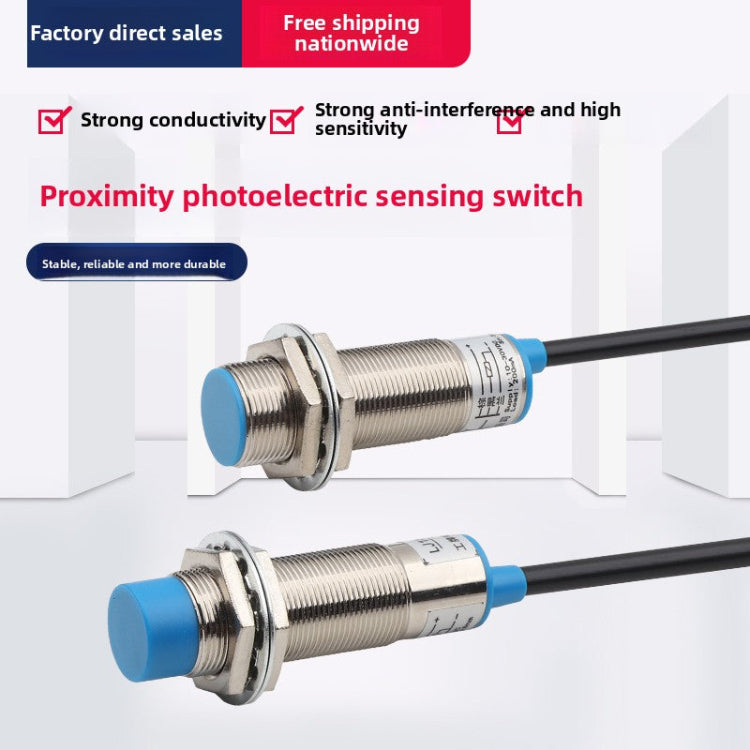 The M18 Proximity Switch Sensor (LJ18A3-8-Z/BX) is a cylindrical inductive sensor designed for detecting metallic objects within an 8mm range. It operates on a DC 6-36V power supply with a 200mA current output, featuring an NPN Normally Open (NO) three-wire configuration (brown: positive, blue: negative, black: signal). With an 18mm diameter, it’s ideal for industrial automation, such as in machinery and conveyor systems, for accurate metal detection. The sensor has a response frequency of 0.5KHz, operates in temperatures from -25°C to +55°C, and comes with a 1.2m cable. It’s valued for durability and precision but may face criticism for sensitivity to electromagnetic interference if not properly shielded.