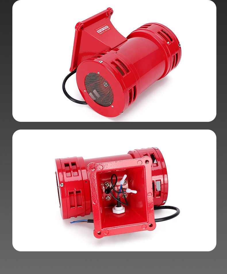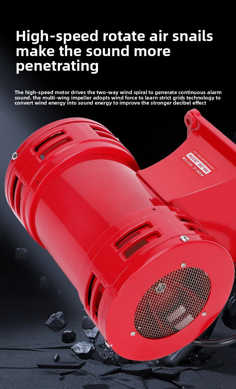 The MS-490 Bidirectional Wind Snail Alarm is a robust electric motor-driven air-raid siren, designed for reliable operation at 220V. It features a bidirectional airflow mechanism to ensure powerful and clear sound projection for effective emergency alerts. Ideal for industrial and civil defense applications, this siren combines durable construction with precise acoustic performance to deliver timely warnings in critical situations. Its integrated buzzer enhances sound intensity, making it a reliable choice for safety and alarm systems.
