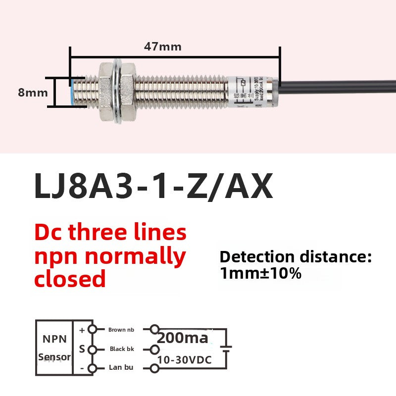 This proximity switch sensor adopts an NPN three-wire design, which can accurately detect metal objects and respond quickly when approaching. It features an efficient limit function, providing reliable protection for your device. Every time you use it, you will feel its powerful performance and stability, making your work smoother and more efficient! Get it right away and add it perfectly to your device.